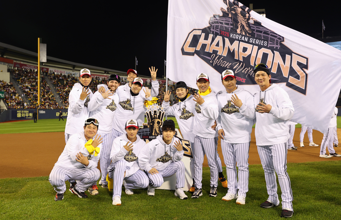 대전 한화생명 볼파크서 열린 5차전에 우승을 확정 지었다. 우승의 기쁨을 홈 팬들과 함께 누리지 못한 게 아쉽다면 아쉽다. 그 아쉬움을 달래기 위해 5차전 다음날 잠실구장에서 우승 축하 행사가 열렸다.