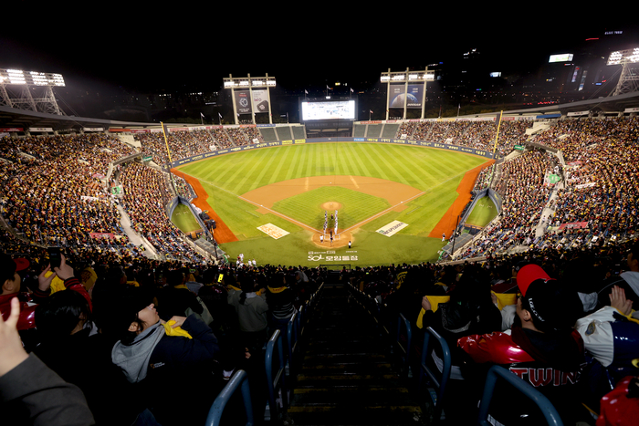 이후 1루와 3루를 바라보며 늘어선 선수들은 팬들과 함께 응원가를 불렀다. 그리고 ‘V4’를 기념하기 위한 사인볼 400개를 관중석으로 투척했다. 우승을 축하하는 화려한 불꽃놀이도 눈을 사로잡았다.
