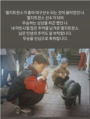 “LG 트윈스가 좋아 야구선수가 되는 것이 꿈이었던 나, LG 트윈스 선수가 되어 우승하는 상상을 하곤 했던 나. 내 어린 시절 많은 추억을 남겨준 LG 트윈스. 남은 인생의 추억도 잘 부탁합니다”(2023년 한국시리즈에서 29년 만에 LG 트윈스가 우승하던 당시 윤박의 SNS)