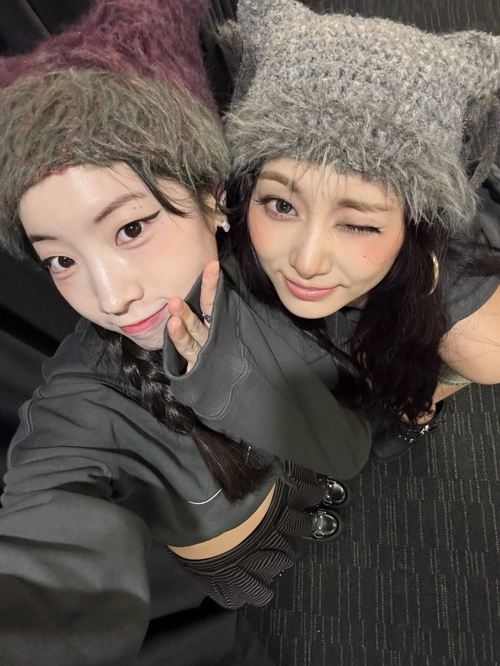 또 다른 사진에서는 회색 후드티에 털모자를 착용하고 브이 포즈를 취하며 힙한 분위기를 연출했다. 멤버 다현과 함께 찍은 투샷 역시 팬들에게 반가움을 더했다.
