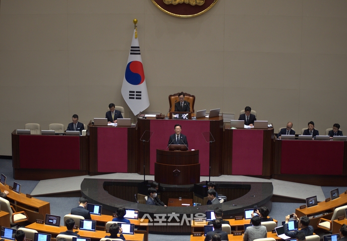[스포츠서울 | 이상배 전문기자] 4일 오전 이재명 대통령은 국회 본회의장에서 ‘2026년도 정부 예산안’에 관한 시정연설을 했다. 이 대통령은 역대 최대인 728조원 규모로 편성된 내년도 예산안의 주요 내용을 설명하고, 예산안이 치밀한 심사를 거쳐서 신속하게 확정될 수 있도록 국회의 초당적인 협력을 요청했다.
