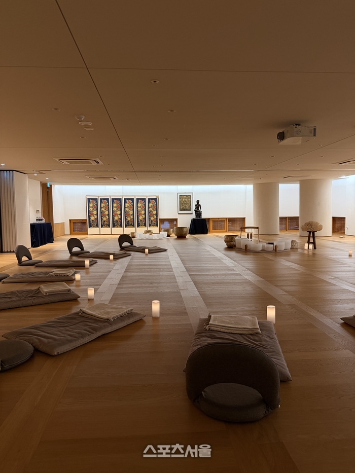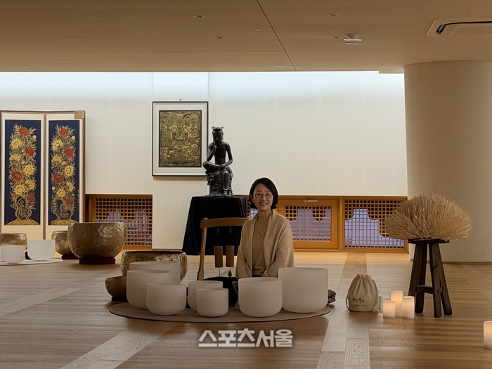 “아무래도 보안이 철저한 공간에서 나도 모르는 긴장이 흐를 수 있는데, 오신 분들이 ‘내가 원하던 거다’ ‘필요한 시간이었다’ ‘개운하다’고 말씀해주셨어요. 호흡 명상으로 들뜨고 가쁜 숨부터 가다듬고, 크리스탈 싱잉볼과 K싱잉볼의 소리 파동으로 온몸을 깊게 이완하는 시간을 가졌지요. 나아가 자신과 세상의 평화를 위한 자비 명상으로 마무리를 했는데, ‘울컥했다’고 이야기 해주시더라고요.”