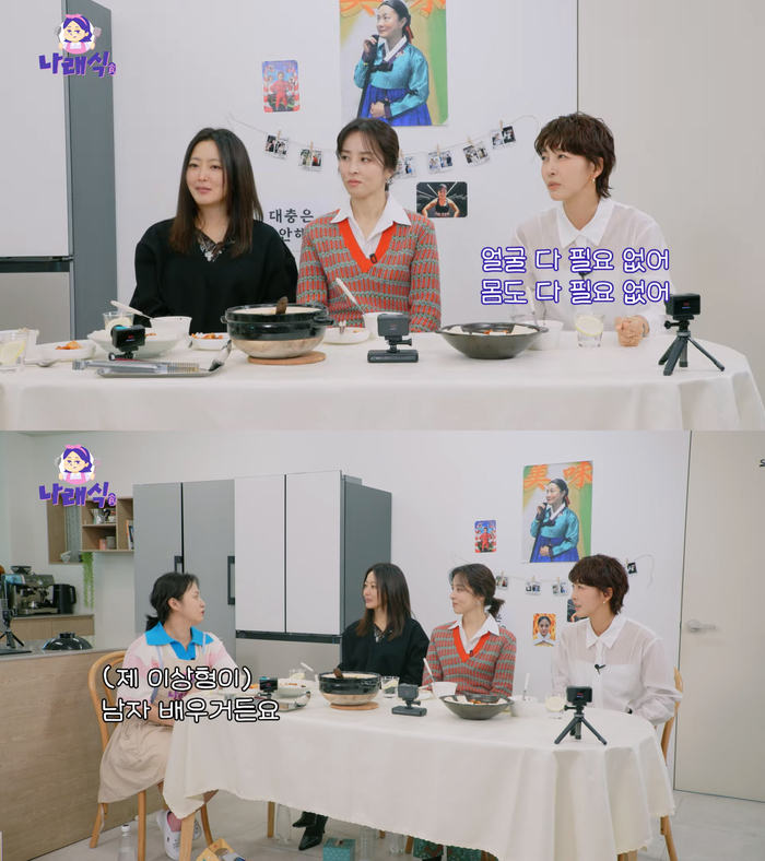 박나래가 먼저 “잘생기고 성격 좋고 몸도 좋은” 남자에 대해 언급하자 김희선과 한헤진, 진서연 모두가 “얼굴 다 필요 없다. 다 늙으니까”라고 조언했다. 이에 박나래는 “언니들 이렇게 말하시면 안 되잖아요. 남편분들 다 잘생겼잖아요”라고 반박해 폭소를 유발했다.
