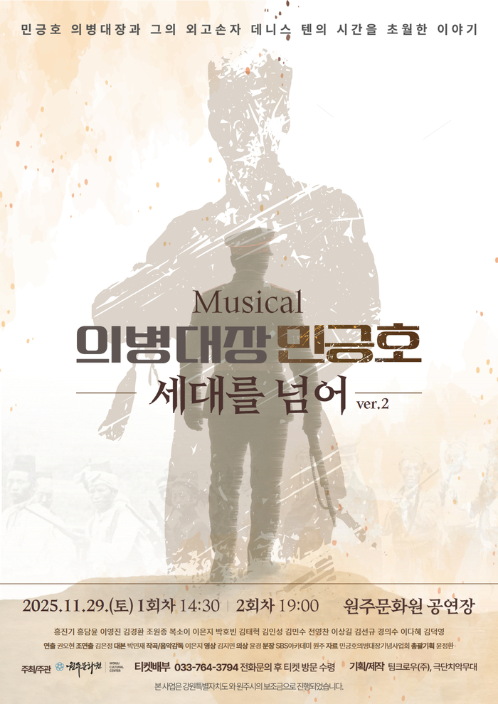 [스포츠서울ㅣ원주=김기원기자]원주문화원(원장 이상현)은 의병대장 민긍호 예술문화사업의 일환으로 의병대장 민긍호 창작뮤지컬 공연을 진행한다.