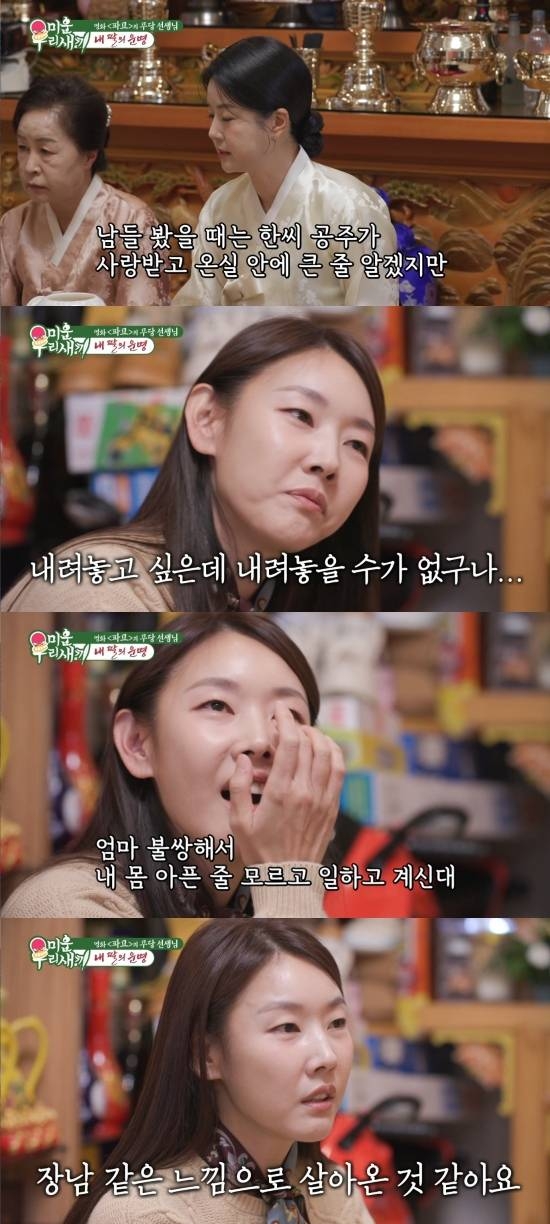 이 말을 들은 한혜진은 결국 눈물을 보였다. 그는 “아버지가 늦게 결혼해 제가 첫째였고, 빨리 아들을 봐야 한다는 생각에 엄마가 힘들었다. 장남 같은 마음으로 살아왔다”고 조심스레 털어놓았다. 어머니 역시 “아버지가 42세에 결혼해 혜진이를 낳았다. 어릴 때부터 혼자 많이 감당했다”고 말했다.