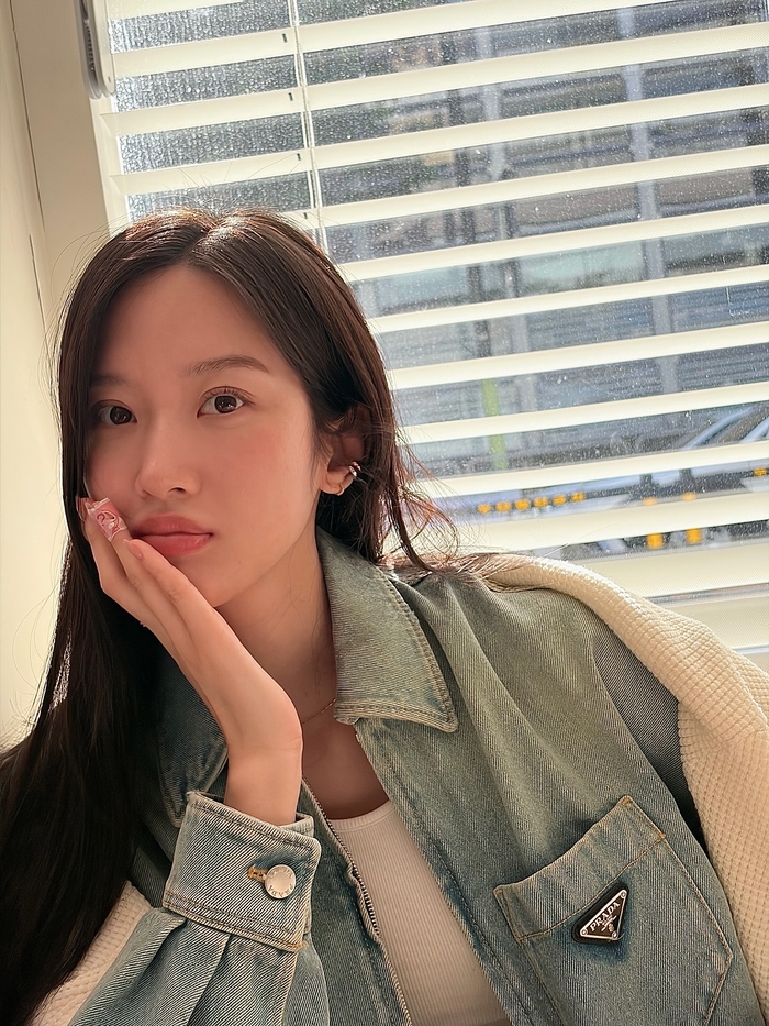 사진 속 문가영은 캐주얼한 데님 재킷에 크림색 니트 소재를 덧댄 아우터를 걸치고 있다. 긴 생머리를 자연스럽게 늘어뜨린 채 창가에 기대앉아 턱을 괸 포즈는 그녀의 뚜렷한 이목구비와 청초한 미모를 더욱 돋보이게 했다.