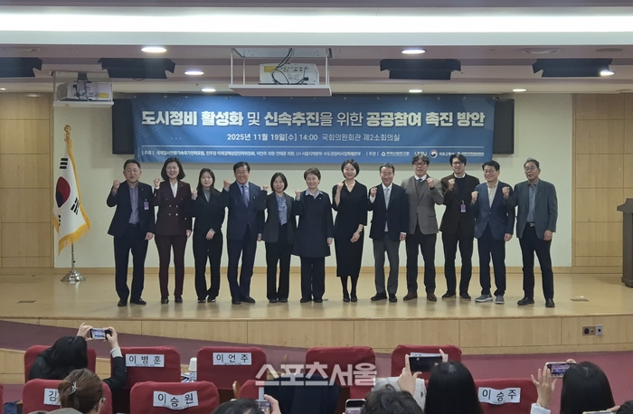 [스포츠서울 | 글·사진 이상배 전문기자] 19일 오후 국회의원회관에서 더불어민주당 이언주 최고위원(미래경제성장전략위원장, AI강국위원회 AX분과장)과 안태준 국회의원(국토교통위원회)이 ‘도시정비 활성화 및 신속 추진을 위한 공공참여 촉진방향 간담회(이하 도시정비 활성화)’를 공동 개최했다.