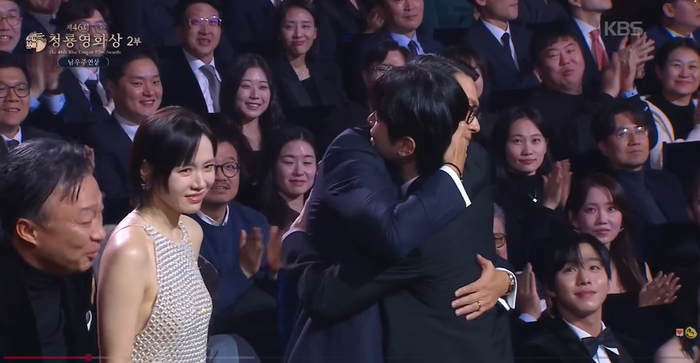 현빈은 손예진과의 포옹을 멈추고 웃으며 박정민을 마주 안아줬다.