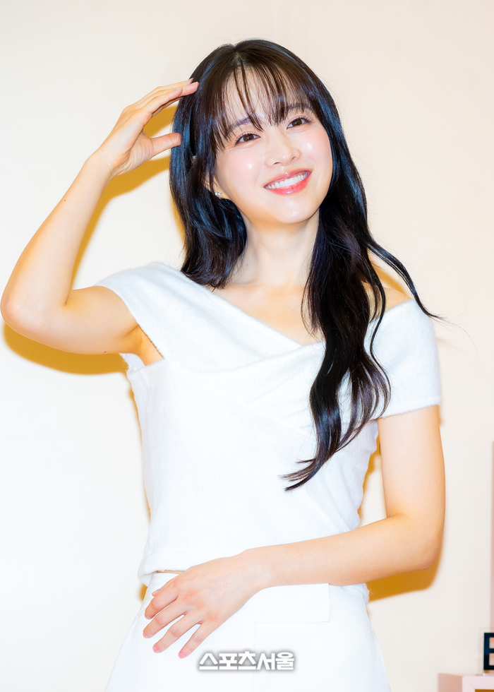 헤어는 자연스러운 긴 생머리에 시스루 뱅으로 연출해 소녀 같은 매력을 극대화했다. 메이크업은 맑고 투명한 피부 톤에 코랄 핑크 립으로 포인트를 줘 건강하고 생기 넘치는 인상을 완성했다. 특히 손 하트와 미소로 팬들과 소통하는 모습에서 친근하고 사랑스러운 매력이 물씬 풍겼다.