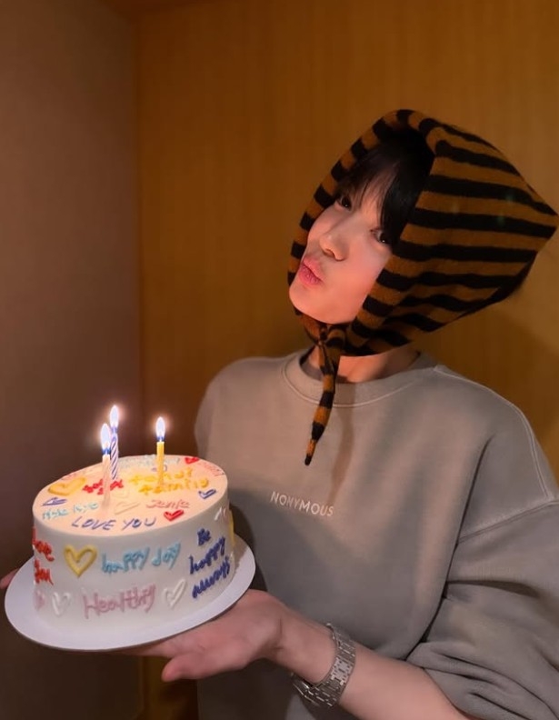 공개된 사진 속 송혜교는 생일 케이크를 들고 입술을 내민 표정을 짓는 등 특유의 러블리한 분위기를 드러낸다. 머리에 스카프를 두른 모습은 소박하면서도 고급스러운 스타일을 완성했고, 초근접 셀카에서도 주름없는 미모가 시선을 끌었다.