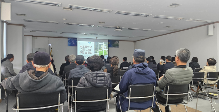 [스포츠서울ㅣ김기원기자]강원특별자치도 속초양양교육지원청(교육장 한명진)은 11월 24일(월) 오후 2시, 속초 조양동 행정복지센터에서 ‘속초중학교 이전 사업’ 주민설명회를 개최하였다.