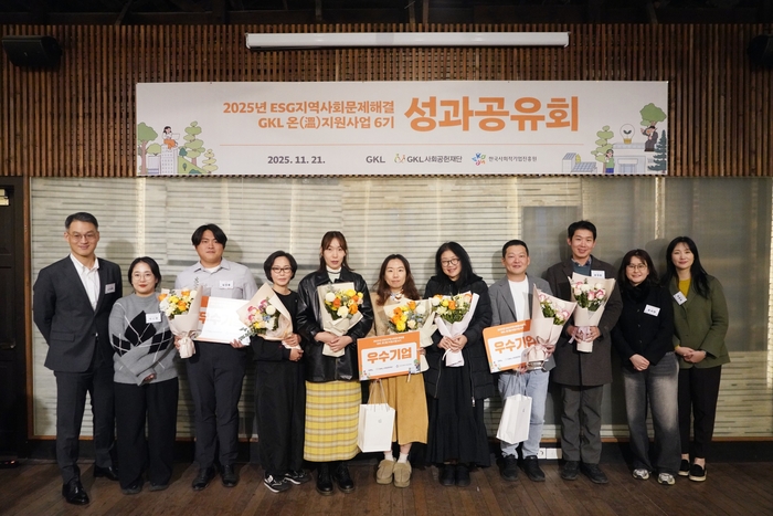 이날 행사에서 발표된 2025년도 ‘ESG지역사회문제해결×GKL 온(溫) 지원사업’의 성과는 ▲‘문화예술기획 살로메’의 지역 유휴공간을 활용한 페스티벌 개최 및 지역예술인 활동 촉진, 지역 문화예술 인프라 개선 ▲‘스테디윈스’의 관광·봉사활동 결합 ESG 콘텐츠 개발 ▲‘아트지움’의 예술을 통한 보호대상 아동 및 자립준비청년의 ‘창작-상품화-가치소비’ 자립기반마련 ▲‘위플랜트’의 ‘멸종위기식물 AR전시와 위기종 식물원 개원’ 및 생물다양성 증진 기업자금 투자 유치 ▲‘인스피어’의 해양쓰레기·전통문화·기술·커뮤니티를 엮은 지속가능한 가치전환 ▲‘팀크로우’의 지역 역사 인물 발굴, 보훈테마 뮤지컬 창작 및 공연 ▲‘힐빙케어’의 무장애 여행지 정보 앱 고도화 및 포용적 관광 생태계 확산 등이다.