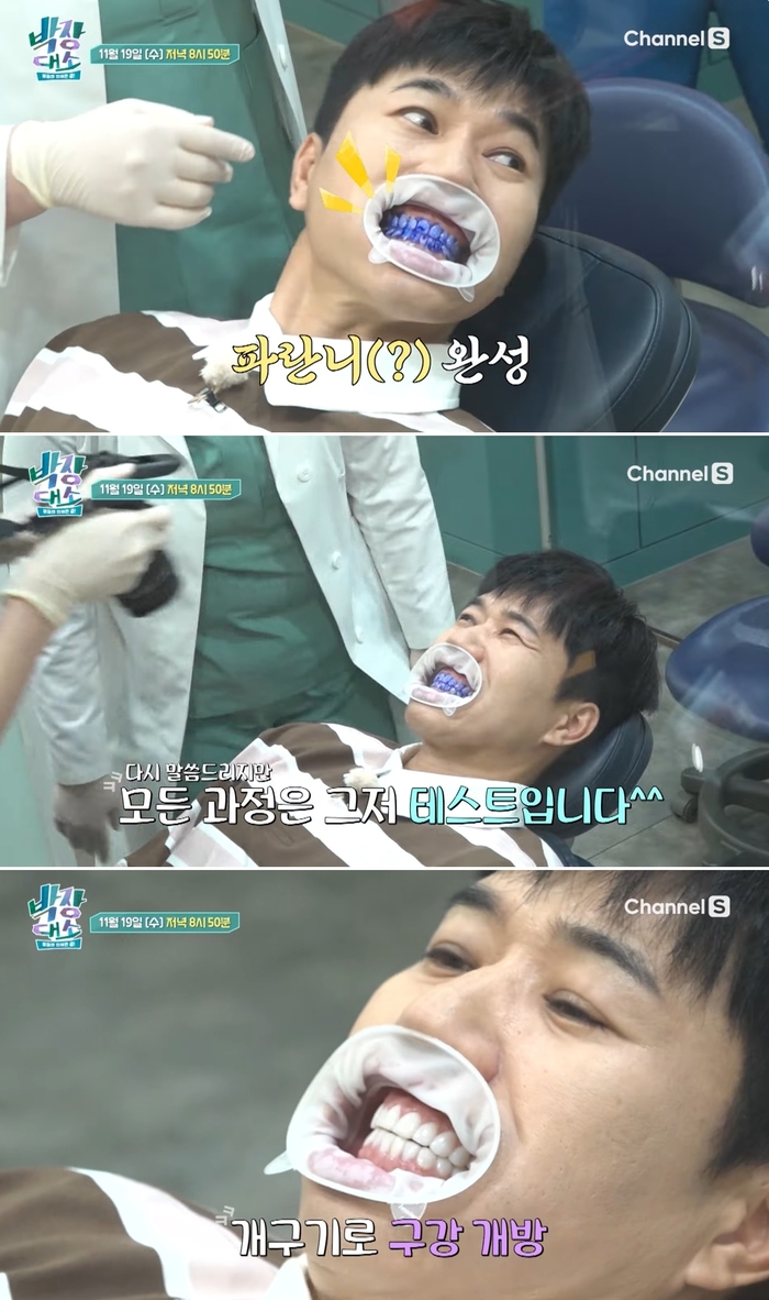 세 사람은 첫 번째 콜을 마친 뒤 “치약을 개발 중인데 평가를 도와달라”는 새로운 요청을 받고 한 치과로 향했다. 의뢰인은 이들을 보자마자 “양치질 잘하셨는지 한번 확인해보겠다”며 주저 없이 김종민의 입에 개구기를 끼워 웃음을 터뜨렸다.