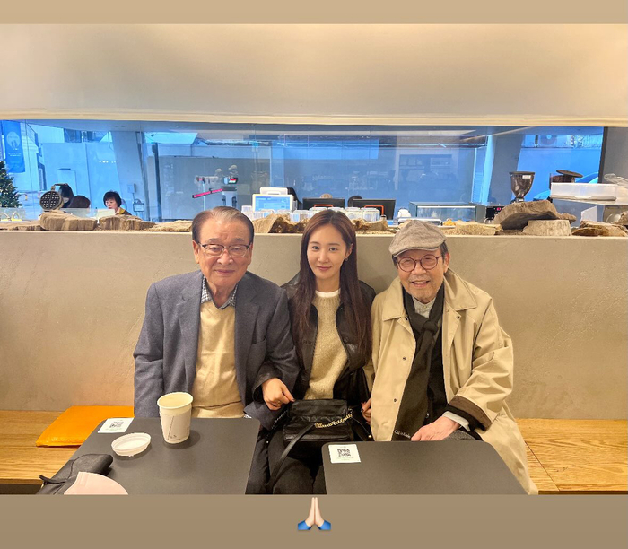 공개된 사진 속에는 권유리가 이순재, 그리고 신구 사이에 앉아 다정하게 팔짱을 끼고 밝게 미소 짓는 모습도 담겨 있다.