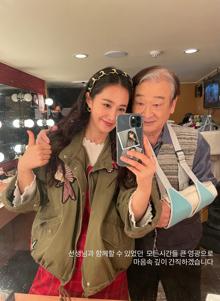 사진 속 이순재와 권유리는 대기실에서 함께 셀카를 찍으며 엄지손가락을 치켜세우는 모습으로 두 사람의 훈훈했던 관계를 짐작하게 한다.
