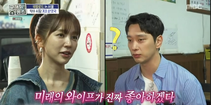 이어 황찬성이 “뭐든지 잘 먹는다. 맛이 느껴지면 맛있다. 제가 맛없다고 하는 건 진짜 아니다”라고 하자, 윤은혜가 “미래의 와이프가 진짜 좋아하겠다”라며 칭찬했다. 그러자 황찬성이 “미래가 아니고 현재 와이프가 있다”라고 밝혔다.