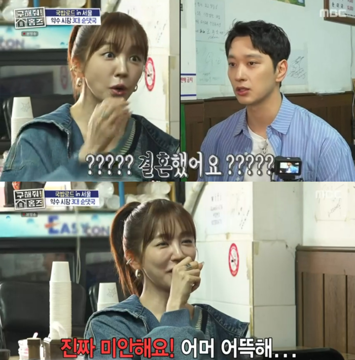 황찬성의 결혼 사실을 몰랐던 윤은혜는 깜짝 놀라며 “진짜 미안하다. 죄송하다”면서 “아직 저한테는 예전 2PM 이미지가 있고 지금도 되게 젊어 보여서 당연히 미혼일 줄 알았다”고 연신 사과했다.