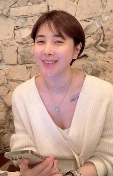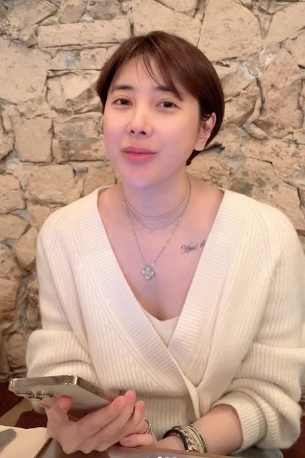 사진 속 서인영은 아이보리 컬러 니트 가디건에 짧은 단발 헤어스타일, 내추럴한 메이크업으로 편안한 분위기를 보여준다. 네 잎 클로버 모양의 목걸이와 손목에 레이어링한 팔찌가 전체 스타일에 은은한 포인트를 더한다.