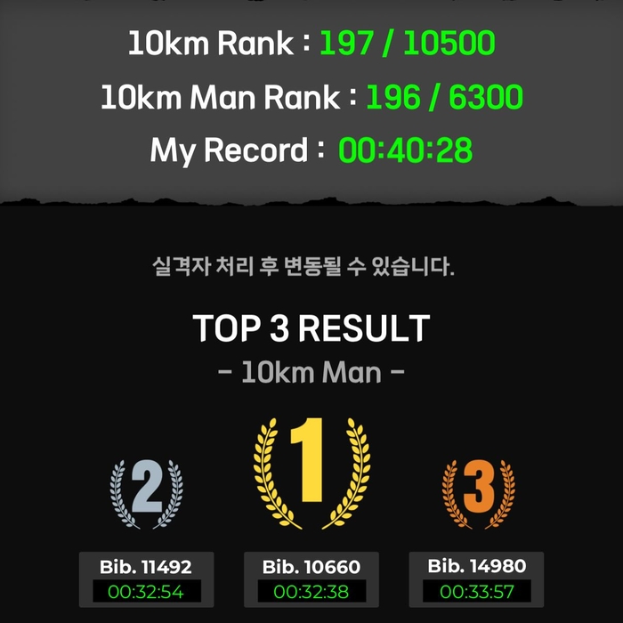 한편, 션은 다음 목표에 대한 포부도 함께 밝혔다. “부상 치료 잘하고 동계 훈련 잘 해서 내년에는 풀코스 서브3(Sub-3, 3시간 이내 완주), 10km 37분 갑니다!”라고 선언하며 마라톤에 대한 뜨거운 열정을 드러냈다.