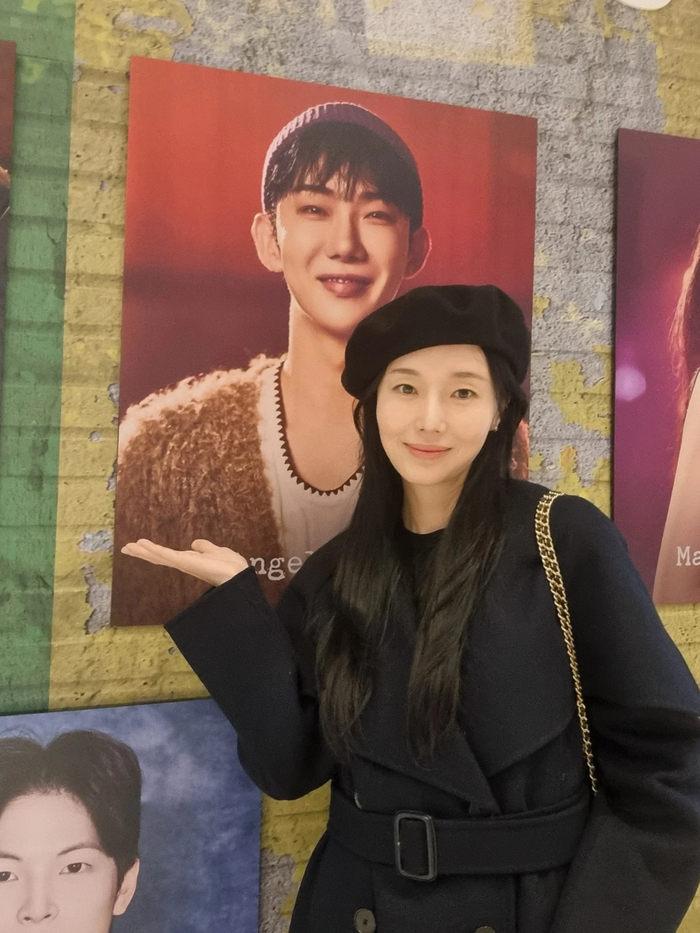 그녀는 뮤지컬 ‘렌트’의 뉴욕 슬럼가 분위기가 물씬 나는 포토존과 조권의 캐스팅 보드 앞에서 인증 사진을 남기며 공연 관람을 인증했다.