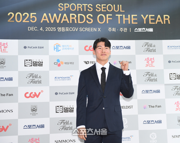 김혜성은 4일 서울 영등포 타임스퀘어 CGV 영등포 스크린X관에서 열린 ‘스포츠서울 올해의 상’ 시상식에서 한국인 야수 최초로 WS 우승의 일원이 된 공로를 인정받아 특별상 트로피를 들어 올렸다. 오랜만에 나선 국내 공식 석상에서 수상하며 의미를 더했다.