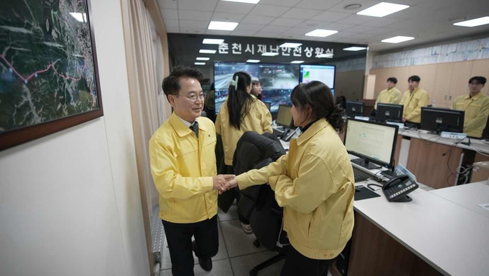 [스포츠서울ㅣ춘천=김기원기자]육동한 춘천시장이 23일 춘천지역에 대설주의보가 발효된 가운데 춘천시 재난안전상황실을 찾아 적설 현황과 도로 제설 상황을 파악했다.