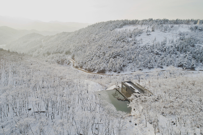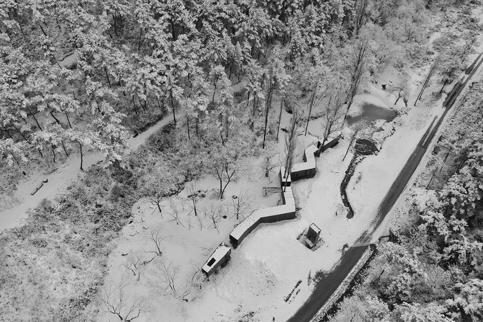 지난 여름, “신은 죽었다”는 니체의 철학을 테마로 문을 연 메덩골정원은 겨울을 맞아 완벽한 변신을 꾀했다. 푸른 녹음이 우거졌던 한국정원은 눈이 내리면 거대한 흑백의 수묵화가 된다.
