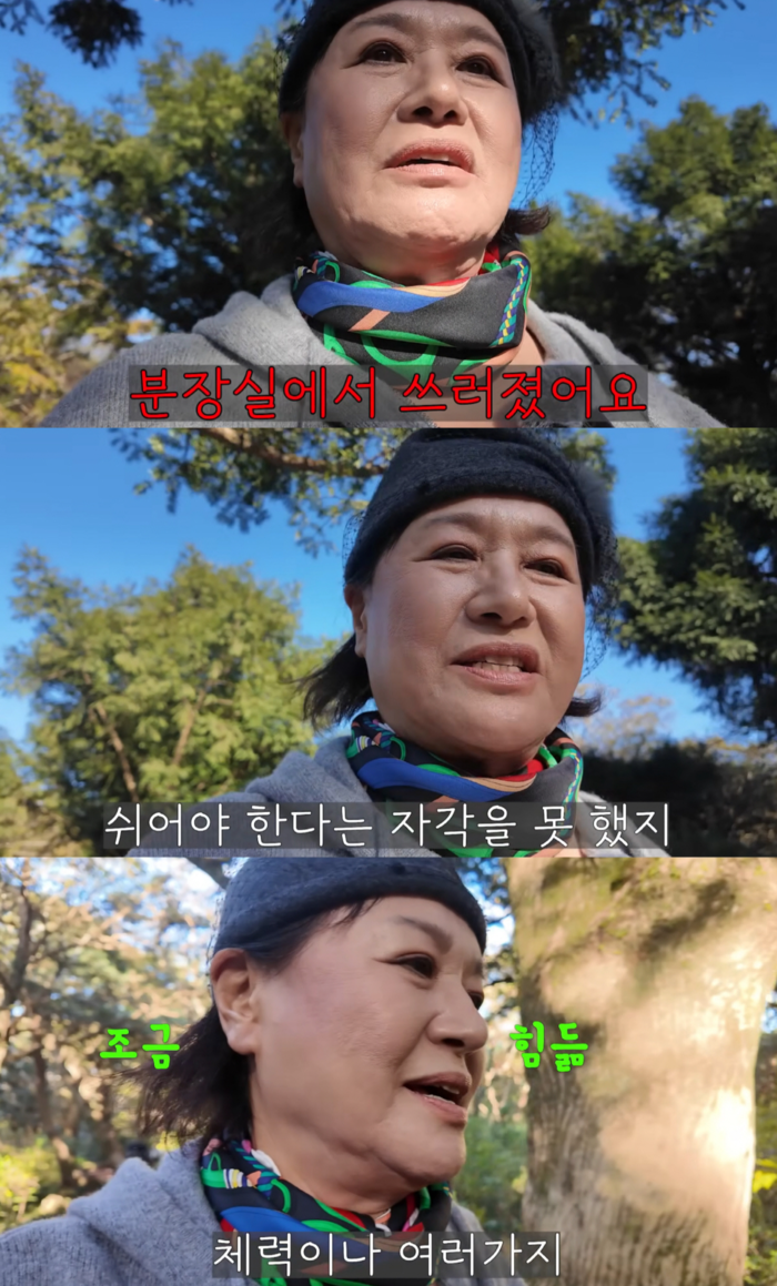 해당 영상에서 제주 여행을 떠난 박원숙은 “사실 제주도를 너무 좋아해서 남해 가기 전에 제주도에서 먼저 살까 생각했었다. 근데 그때도 일하느라 힘들어서 분장실에서 쓰러졌다. 무식하게 병원에 가서 치료하고는 쉬어야 한다는 자각을 못 했다”고 고백했다.