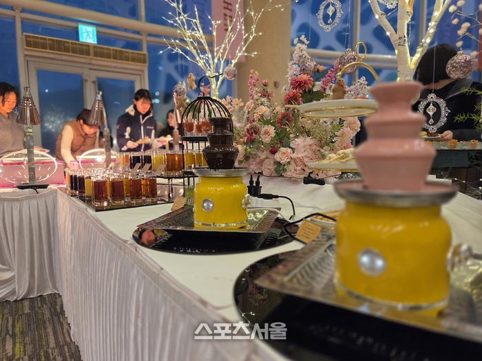 특히 갓 구운 페이스트리 위에 올려진 신선한 딸기를 한 입 베어 물면, 상큼한 과즙이 톡 터지며 추위로 움츠러들었던 몸이 사르르 녹아내린다. 핑크빛과 노란빛으로 흐르는 초콜릿 분수 앞은 단연 아이들의 천국이다. 고사리 같은 손으로 마시멜로를 찍어 먹으며 입가에 달콤함을 묻힌 아이들은 “세상에서 제일 맛있다”며 엄지를 치켜세운다. 창밖으로 펼쳐지는 하얀 설경을 배경으로 즐기는 이 달콤한 성찬은 그 순간만큼은 어떤 산해진미도 부럽지 않은 황홀경이다.