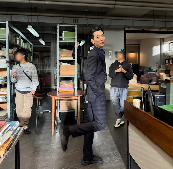 법정 대기실에서 슈트 차림에 편안한 슬리퍼를 신고 휴식을 취하는 모습은 ‘츤데레’ 강다윗의 반전 매력을 보여준다.