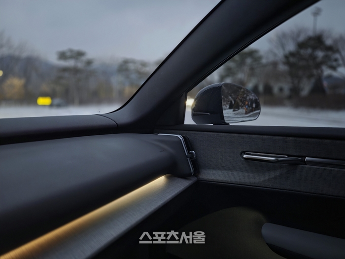 본격적으로 눈 덮인 양평의 산길을 올랐다. 노래의 비트가 빨라질수록 차의 움직임도 경쾌해진다. 미끄러운 노면에서도 흐트러짐 없이 바닥을 움켜쥐는 안정감은 ‘안전의 대명사’ 볼보답다. 엑셀을 밟자 전기차 특유의 토크가 즉각적으로 터져 나오며 언덕을 거침없이 치고 올라간다. 차창 밖으로 스쳐 지나가는 겨울 풍경이 노래의 뮤직비디오 한 장면처럼 아련하게 겹쳐진다.