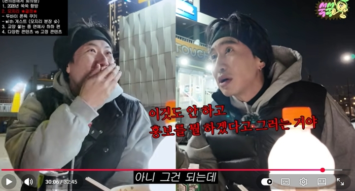 이광수는 지난 24일 업로드 된 유튜브 채널 ‘쑥쑥’에 출연했다. 채널 주인장 양세찬과 한강 달리기를 한 뒤 편의점에서 라면과 소세지 등을 먹던 중 PD의 제안으로 2026년 기획 방향에 대해 논의했다.