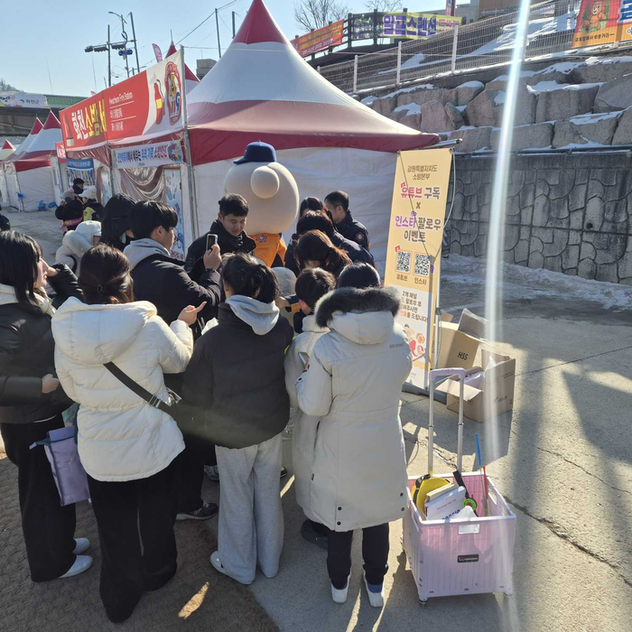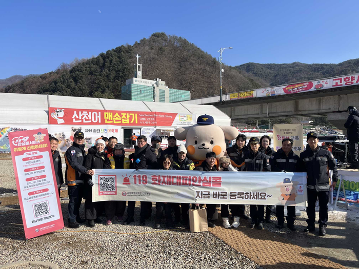 [스포츠서울ㅣ춘천=김기원기자]강원특별자치도 소방본부(본부장 오승훈)는 27일 화천산천어축제장에서 응급상황과 화재 상황 모두에 대비할 수 있는 ‘119안심콜’과 ‘119화재대피안심콜’서비스 홍보 캠페인을 실시했다.