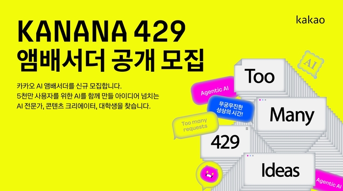 [스포츠서울 | 표권향 기자] 카카오가 AI 전문가·크리에이터·대학생을 대상으로 AI 앰배서더 ‘KANANA(카나나) 429’를 신규 모집한다고 밝혔다. 올해는 활동자의 규모를 확대해 더욱 다양한 의견을 수렴하고, 카카오의 AI를 효율적으로 전파하기 위한 지원을 이어갈 계획이다.