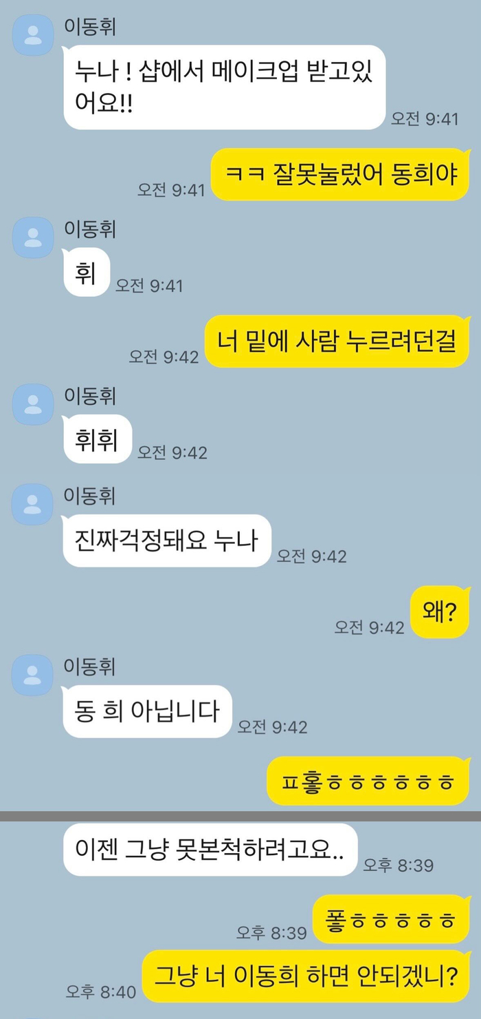 홍진경은 3일 자신의 사회관계망서비스(SNS)에 “이동휘 명심하세요 #이동휘 입니다!!!”라는 글과 함께 여러 장의 대화 캡처 사진을 게시했다. 공개된 대화 속에서 홍진경은 이동휘의 이름을 지속적으로 “이동희” 또는 “동희”라고 잘못 부르며 실수를 연발했다.
