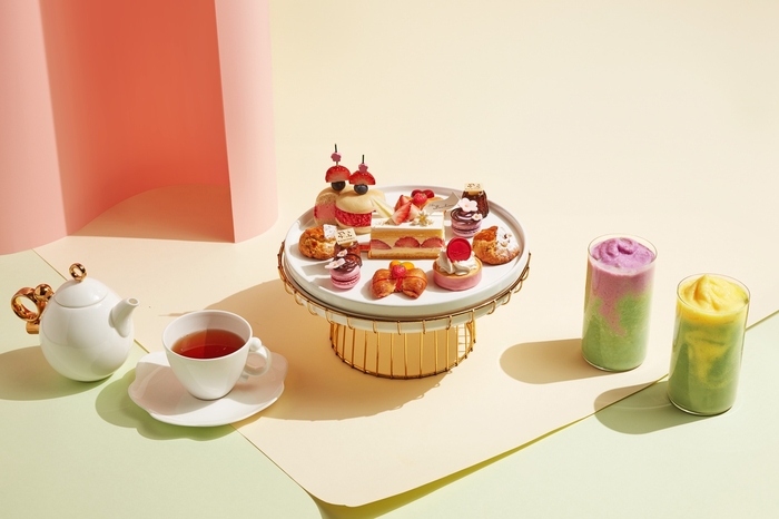 비스타 워커힐 서울의 ‘비스타 팔레트(Vista Palette)’는 미식과 컬러로 봄의 리듬을 표현한다. 디저트 플레이트와 페어링 티로 구성된 ‘쁘띠 애프터눈 티 세트(2인)’ 또는 유기농 재료로 만든 ‘웰니스 스무디(망고·블루베리 중 2잔)’ 중 하나를 조식과 함께 선택할 수 있다.