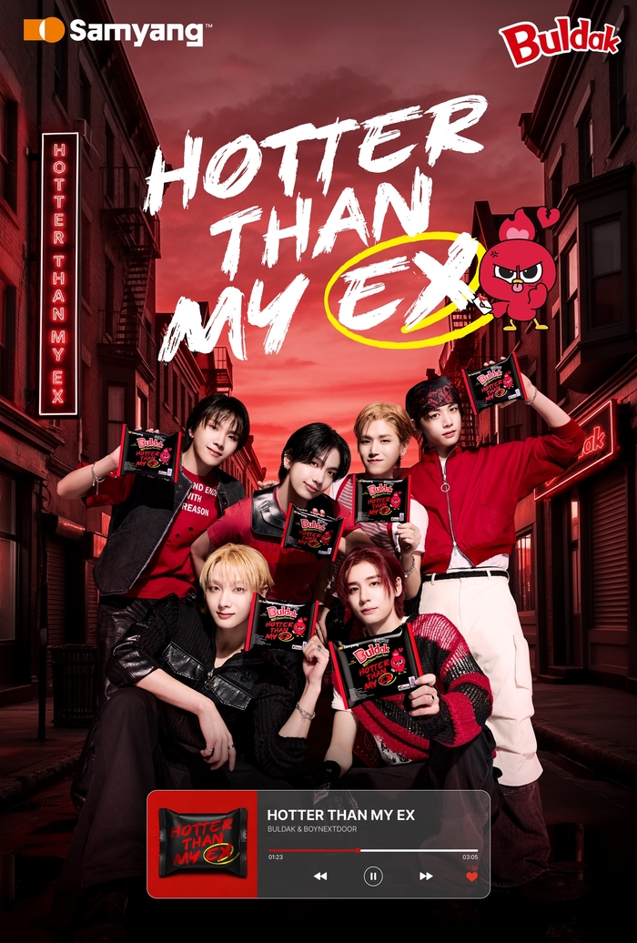 9일 삼양식품은 보이넥스트도어(성호, 리우, 명재현, 태산, 이한, 운학)를 불닭브랜드(Buldak)의 신규 글로벌 캠페인 ‘Hotter Than My EX’의 모델로 선정했다고 밝혔다. 글로벌 시장에서 사랑받고 있는 K-팝 대표 그룹 보이넥스트도어와 K-푸드 불닭브랜드의 만남이 좋은 시너지를 낼 것으로 기대된다.