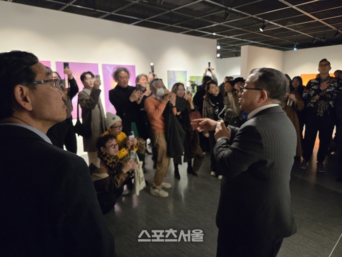 ‘작은 거인’ 김수철이 이번엔 음표 대신 붓을 들었다. 김수철 작가는 2월 13일(금) 예술의전당 한가람디자인미술관에서 전시 ‘김수철, 소리그림’ 오프닝을 열고, 음악가로서 쌓아온 감각을 회화로 확장한 작업을 공개했다. 오프닝 현장에는 윤여정, 정우성, 박상원, 배창호감독 등 연예계와 문화예술계 지인들이 참석해 전시를 축하했다.
