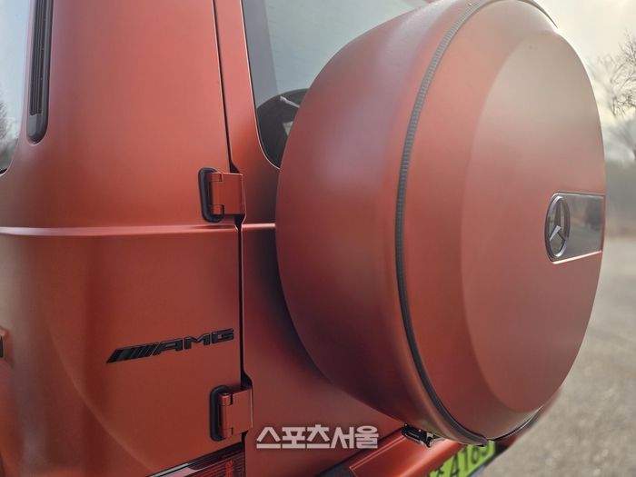 후면의 스페어타이어 커버는 G바겐의 아이덴티티다. 투박해 보이지만, 이 안에 담긴 것은 ‘헤리티지’라는 이름의 럭셔리다. 문을 여닫을 때 들리는 “철컥” 하는 금속성 소리는 마치 금고 문을 여는 듯한 청각적 쾌감을 선사한다. 오감을 만족시킨다는 가사는 이 차를 위해 쓰인 듯하다.