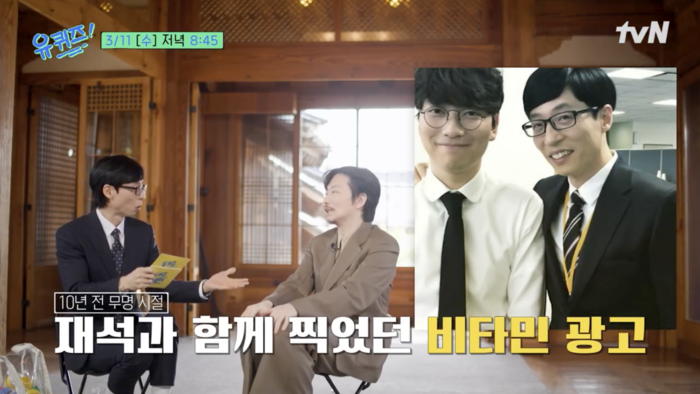 대학 시절 스스로 ‘예술병’에 걸렸었다고 고백하는가 하면, 유재석과 10년 전 비타민 광고 현장에서 만났던 특별한 인연을 회상한다. 당시 유재석에게 받았던 사인을 잃어버렸다는 ‘웃픈’ 에피소드로 유재석의 뒷목을 잡게 하기도 했다.