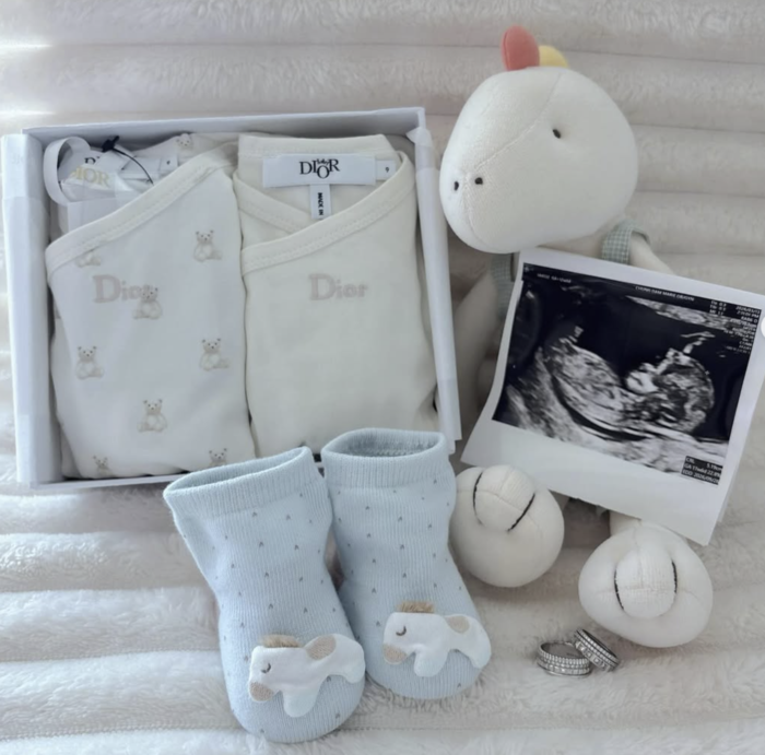 나현이 글과 함께 공개한 사진에는 초음파 사진과 배냇저고리, 웨딩 반지가 담겨 눈길을 끌었다.