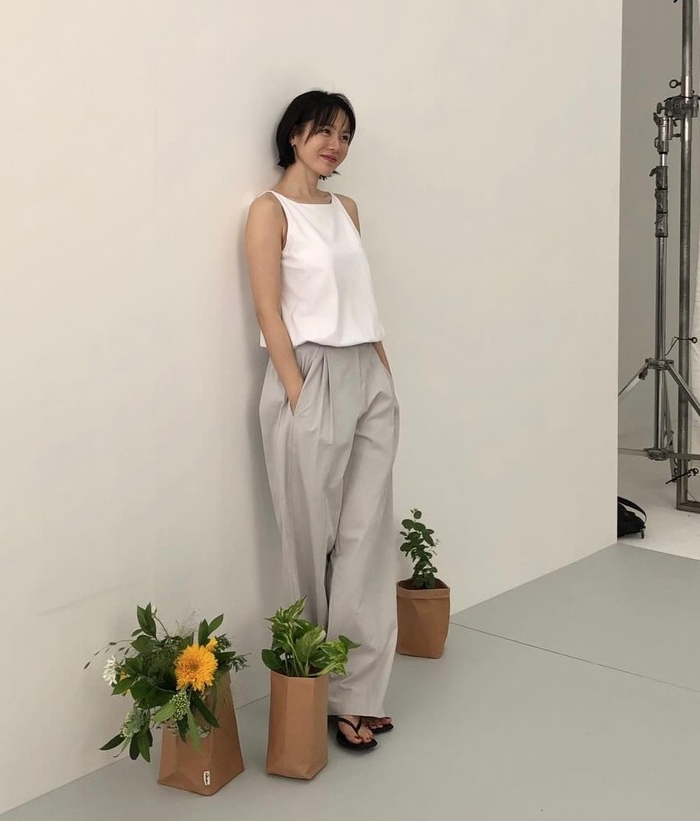 공개된 사진 속 손예진은 이너웨어 브랜드 화보 촬영장으로 보이는 곳에서 포즈를 취하고 있다. 고급스러운 로즈 골드색 새틴 이너웨어 세트를 입은 손예진의 군살 하나 없는 몸매와 특히 선명하게 자리 잡은 ‘11자 복근’이 시선을 단숨에 사로잡는다. 짧은 단발머리 스타일과 탄탄하게 다져진 건강한 실루엣이 독보적인 매력을 발산했다.