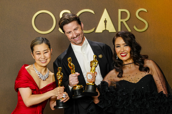 장편 애니메이션상을 수상한 뒤 연출을 맡은 메기 강 감독은 “저와 같은 모습을 한 모든 분께도 감사드린다”며 “이런 영화를 만드는 데 너무 오랜 시간이 걸려서 죄송하다. 이 상은 한국과 전 세계 모든 한국인을 위한 것”이라고 말했다. 이어 “이제 다음 세대는 이런 이야기를 갈망하지 않아도 되는 시대가 되길 바란다”고 덧붙였다.