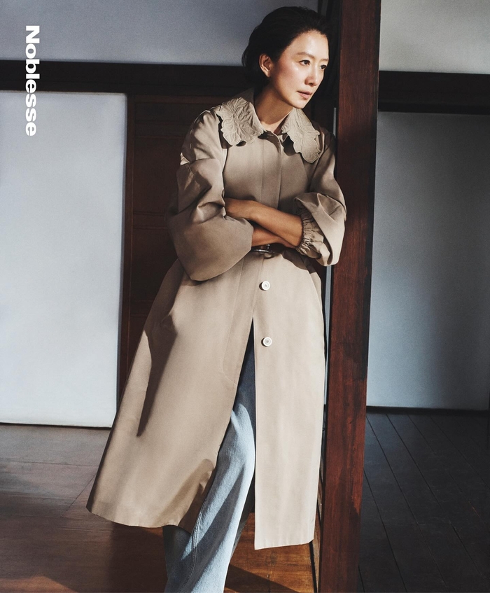 공개된 사진 속 김희애는 특유의 차분하면서도 힘 있는 분위기를 자아내고 있다. 특히 디테일이 돋보이는 트렌치코트와 활동성을 강조한 쇼츠 셋업을 매치하여 실용적이면서도 우아한 스타일을 선보였다.