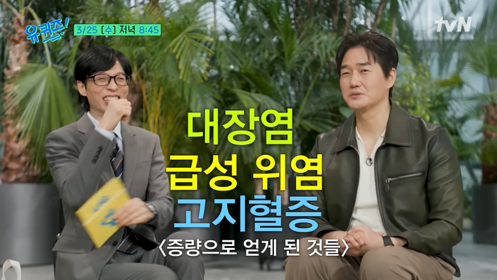 유지태는 “증량을 위해 고칼로리 음식을 많이 먹었다. 그러다 보니 고지혈증, 급성위염, 대장염 등이 생겼다”고 털어놨다.