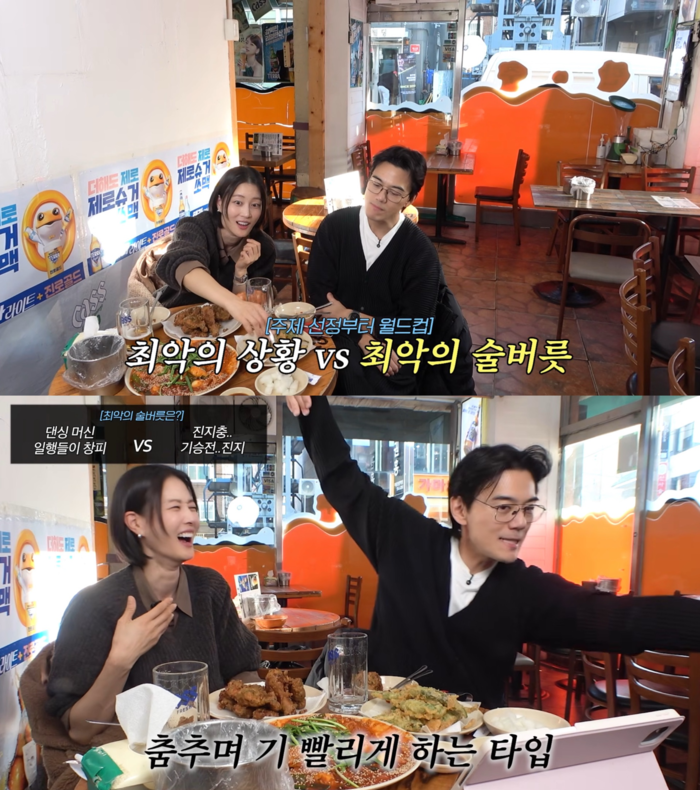 먼저 ‘댄싱머신 vs 진지충’이 제시됐다. 이에 두사람은 각각 댄싱머신, 진지충이라고 말해 웃음을 자아냈다.