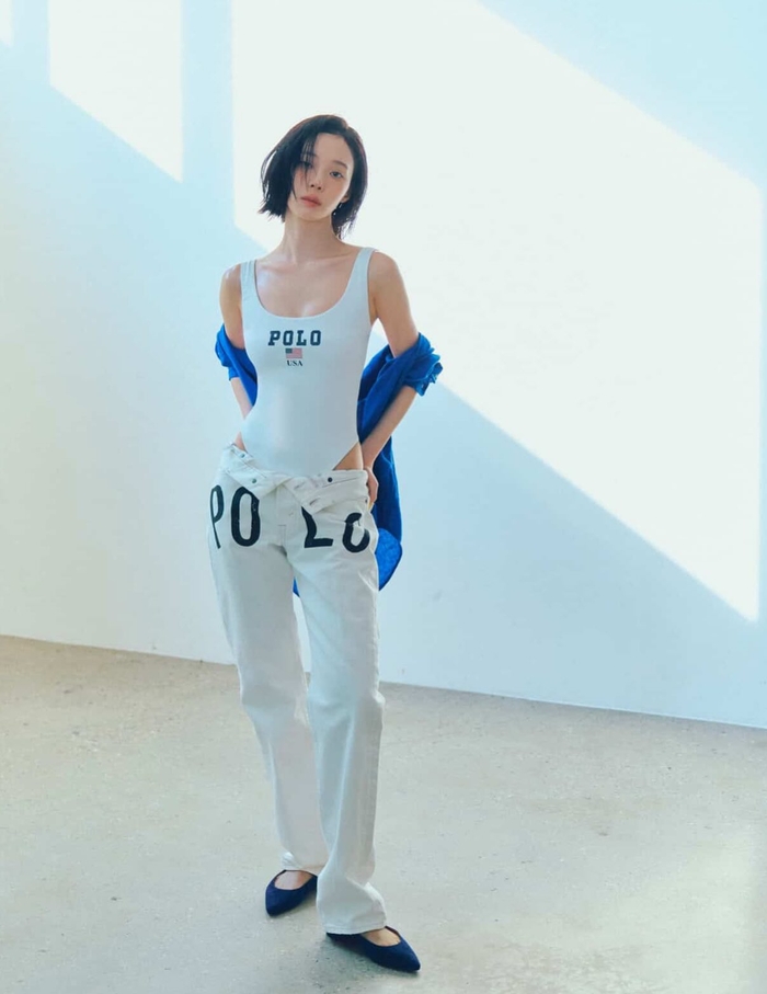 공개된 사진 속 윈터는 화이트 컬러의 슬리브리스 바디슈트를 착용해 자신의 탄탄한 몸매 라인을 가감 없이 드러냈다. 깊게 파인 U넥 디자인과 슬림한 핏은 윈터의 직각 어깨와 군살 없는 보디라인을 부각시키며 반전 매력을 선사했다.