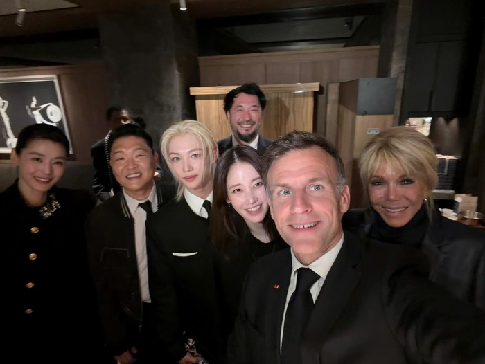 마크롱 대통령은 4일 공식 SNS를 통해 방한 일정 중 만난 K-스타들과의 기념사진을 게재했다.