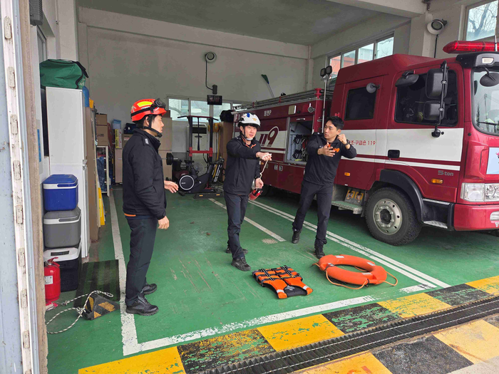 주요 내용은 ▲선착대 초기조치 ▲비입수 구조 원칙 ▲상황보고 요령 등 초동대응 전반이다. 이와 함께 구조대원이 교관으로 참여해 드로우백 사용법을 교육하고, 구급차 내 수난장비 적재 상태와 구급업무 운영 사항도 점검한다.