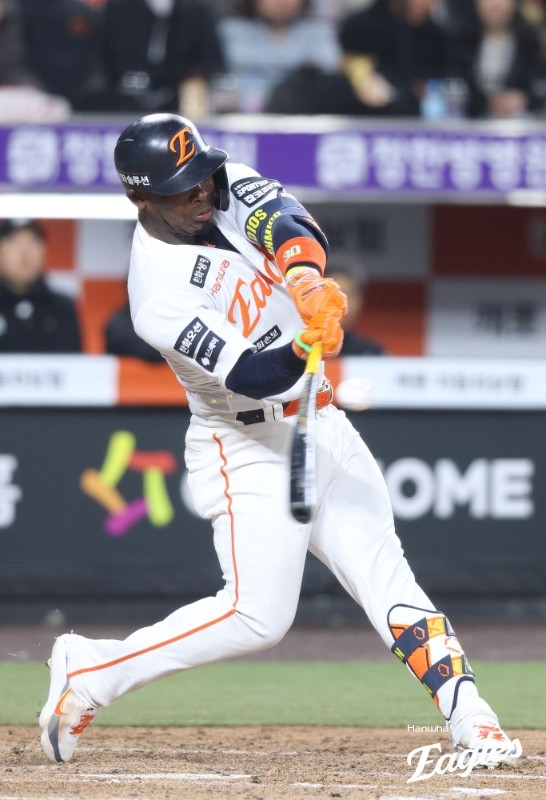 히팅포인트가 오른 무릎부근이라면, 임팩트 구간은 그 뒤여야 한다. 스윙이 ‘플랫’할 수밖에 없다. 시속 152~153㎞짜리 속구에 배트가 밀리는 게 당연하다. 리그 환경이 스윙에 영향을 크게 끼친다는 의미다.